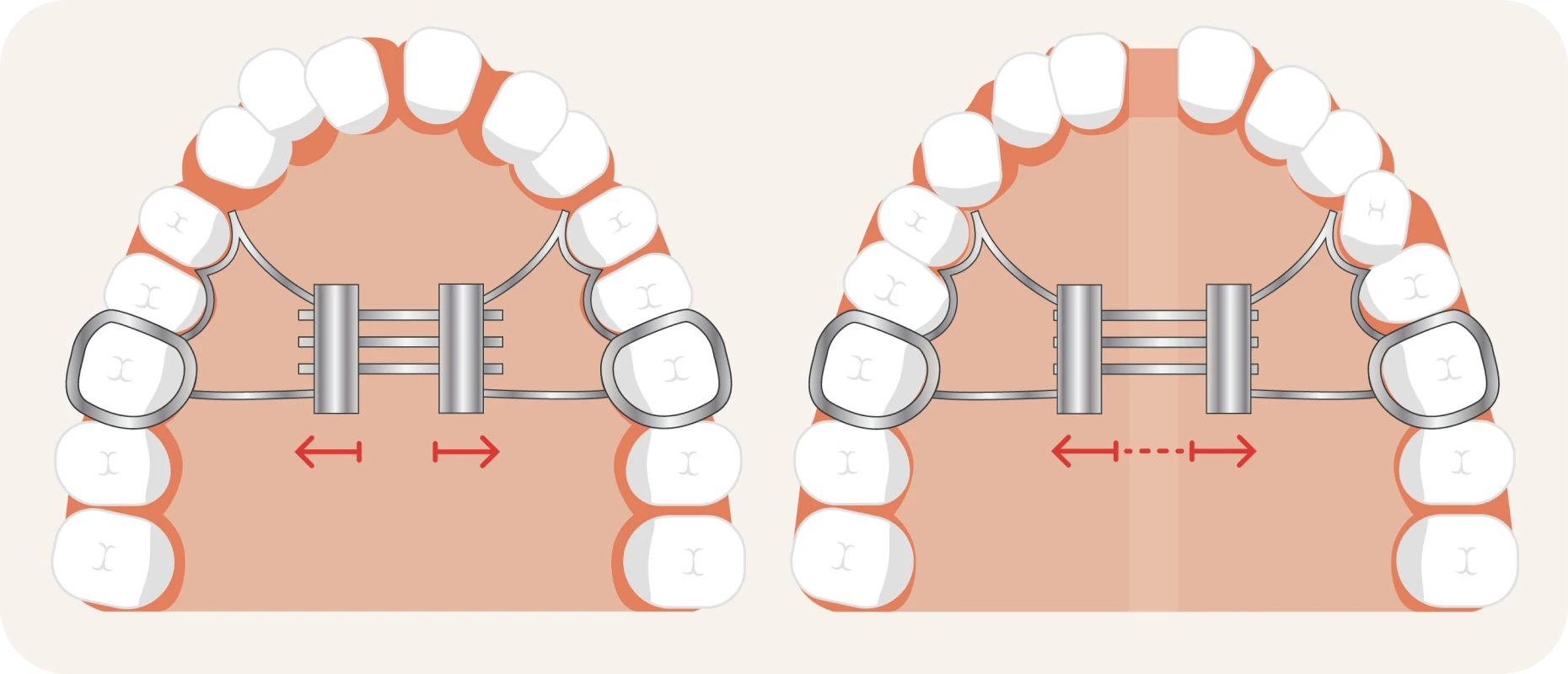 En conséquence, la mâchoire supérieure s’élargit. Ce traitement convient aux enfants entre 6 et 10 ans. À cet âge, la suture palatine reste souple.