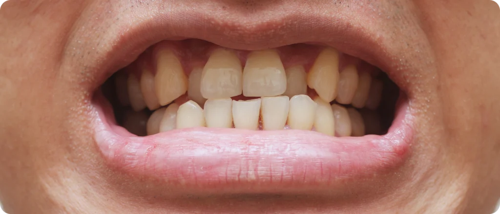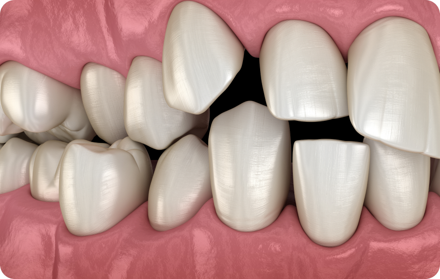 - Dents qui se chevauchent ou se superposent.